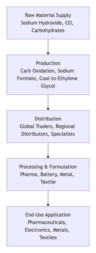 - Raw Material and Energy Price Volatility: The sodium formate production route, a major method, is sensitive to the prices of sodium hydroxide and carbon monoxide. Energy represents a major operational cost for both production and distribution. Mitigation Strategy: Forward contracting for key feedstocks, investments in energy-efficient logistics (e.g., optimized routing, intermodal transport), and, for producers, exploring alternative, less feedstock-intensive production routes (e.g., carbohydrate oxidation) are critical risk management tools.